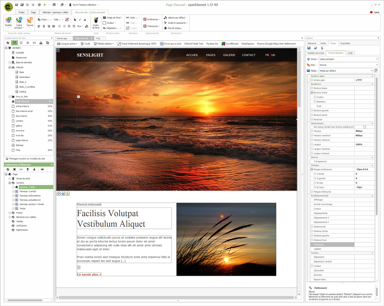 Comme vous pouvez le voir, en prévisualisant la page d'accueil (index), nous avons inclus un slider texte + images.