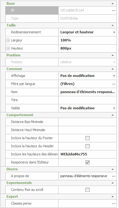 - un nouvel élément "panneau d'éléments responsive" (panneau d'éléments responsive ID WE1a8887b1d4)